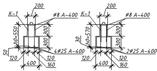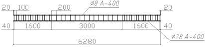 Для продольной рабочей арматуры ø25 A-400 (<ø22) принимаем поперечную арматуру ø8 A-400.