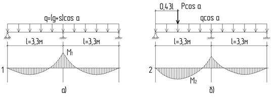 Рис. 1.2 - Расчетные схемы настилов: а) – схема усилий первого сочетания нагрузок; б) – схема усилий второго сочетания нагрузок