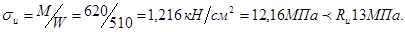 Ru ´ = Ru х Mu =13 х1,2 =15,6 МПа