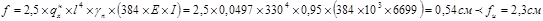 Проверяем прогиб при первом сочетании нормативных нагрузок от собственного веса и веса снега:
