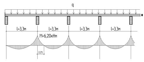 Прогон рассчитывается как многопролетную неразрезную шарнирно опертую балку. Пролеты прогона принимаем равные по всей длине шагу несущих конструкций по 3,3 м. Нагрузка от покрытия на 1 пог. м прогона