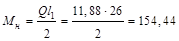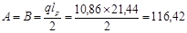 Рассчитываем опорную вертикальную диафрагму, воспринимающую распор, на изгиб как балку, частично защемленную на опорах, с учетом пластического перераспределения моментов: