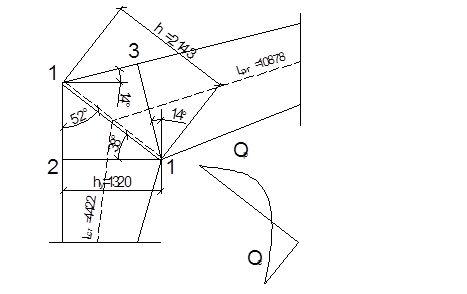 Требуемая высота диафрагмы из расчёта на смятие рамы поперек волокон от действия распора (рис. 3.6):