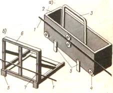 Металевий ящик (Рис. 3.13) розчину об'ємом 0,24 м3 служить для подачі розчину на робоче місце муляра. Допускається підйом в гірлянді (до шести ящиків одновре¬ менно).