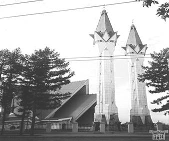 Хакимовская мечеть (Уфа, ул. Бекетовская, ныне Социалистическая, 11). Единственная в республике двухминаретная мечеть, построена в 1907-08 купцом А. Хакимовым. Парные минареты мечети на высоком 3-ярусном основании состояли из 2 поставленных друг на друга цилиндров разного диаметра, декорированных в верхней части рельефным кирпичным орнаментом и завершенных пологой кровлей. Вследствие искажения пропорций и изменения внешнего облика здания после уничтожения минаретов в 1939 архитектура утратила свою выразительность. Нарушены и каноны внутренней планировки мечети, в результате чего молитвенные залы, михраб и вестибюль "потерялись" в многочисленных перегородках.
