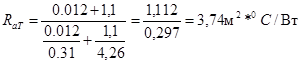 Заданное СП 23-101-2004 условие не выполнимо, т.е. величина RaT превышает величину RT более чем на 25 %, то приведенное сопротивление теплопередаче панельных стен определяют по формуле: