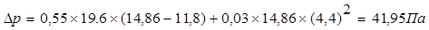 ΔP=0,55*Н*(γext – γint ) + 0,03*γext *υ2 ,