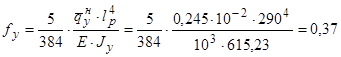 Необходимо проверить прогиб прогона от действия нормативной нагрузки. Находим составляющие прогиба относительно главных осей: