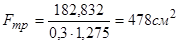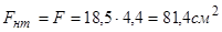 Fрасч = Fбр = 18,5∙19,2 – 18,5∙(1,6+2) =355,2 см2 ;