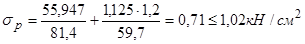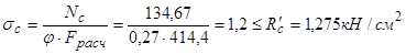здесь Fбр – площадь сечения брутто, Fбр = 18,5∙73,6 = 1361,6 см2 .