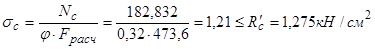Расчет центрально-сжатых элементов на устойчивость производится по формуле: