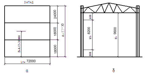 Рисунок 5.2. а- план здания, б- поперечный разрез