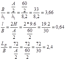 Полученную высоту оконных проемов округляем в сторону увеличения кратно 0,6. Принимаем ![]()