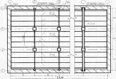 Для обеспечения жёсткости здания в поперечном направлении и во избежание утяжеления надоконных перемычек принимаю поперечное расположение ригелей по осям простенков и продольное - панелей перекрытия. Номинальная ширина каждой панели принимается одинаковой для всего перекрытия в пределах 1,3…1,7 м, и вычисляется по формуле: