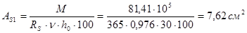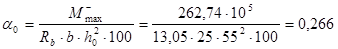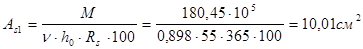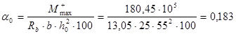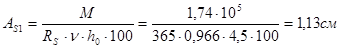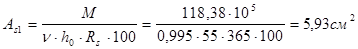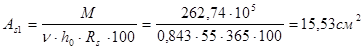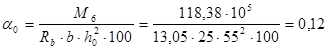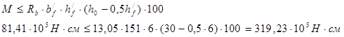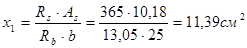 М u 1 = Rb ∙ b · х ∙ ( h 0 – 0,5 · x ) ∙ 100 = 13,05 · 25 · 11,39 ·(55 – 0,5 · 11,39) · 100 = 183,22 · 105 кН · м