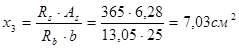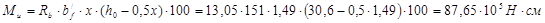 М u 3 = Rb ∙ b · х ∙ ( h 0 – 0,5 · x ) ∙ 100 = 13,05 · 25 · 7,03 ·(57 – 0,5 · 7,03) · 100 = 122,67 · 105 кН · м
