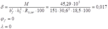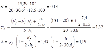 Расчёт прочности нормальных сечений производится в соответствии с п. 3.16 [1] (рис. 5). Предполагаю, что продольной сжатой арматуры по расчёту не требуется.