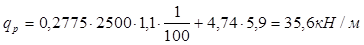 q пола = 1,95 кН/ м2 – расчётная нагрузка от веса пола,кН/м2 [табл. 1 ПЗ];