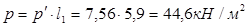 P = 44,6 кН – расчётная временная погонная нагрузка на ригель кН/м;
