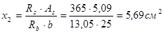 М u 2 = Rb ∙ b · х ∙ ( h 0 – 0,5 · x ) ∙ 100 = 13,05 · 25 · 5,69 ·(55 – 0,5 · 5,69) · 100 96,82 · 105 кН · м