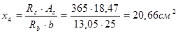 М u 4 = Rb ∙ b · х ∙ ( h 0 – 0,5 · x ) ∙ 100 = 13,05 · 25 · 20,66 ·(57 – 0,5 · 20,66) · 100 = 314,57 · 105 кН · м