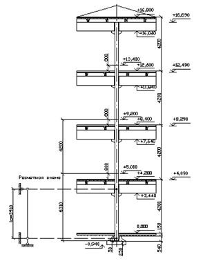Длина здания в осях равна произведению продольного размера ячейки на число ячеек вдоль здания.