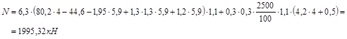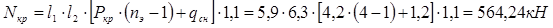 Полное расчётное усилие, кН, в колонне вычисляется по формуле: