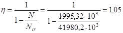 Под действием внецентренно - приложенной силы N гибкие элементы изгибаются, что приводит к увеличению начального эксцентриситета, поэтому в элементах с гибкостью λ = l0 /i>14 – влияние эксцентриситета е0 учитывается путем умножения е0 на коэффициент η.