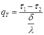 Следовательно, тепловой поток qТ , Вт/м2 , через однородную плоскопараллельную стенку толщиной δ , м, из материала с теплопроводностью λ, Вт/м. о С, можно записать в виде