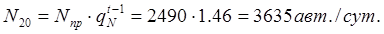· Среднегодовая суточная интенсивность движения для автобусов определяется по формуле (6[2]):