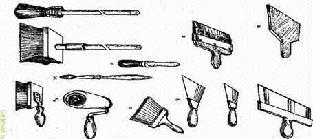 Также при подготовке поверхности применяются различные виды кистей (7)кисть плоская,(8) кисть круглая. И различные виды валиков (9,10).
