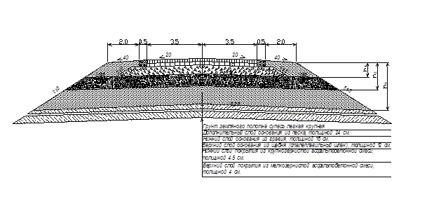 На всем протяжении строящейся автомобильной дороги конструкция дорожной одежды одинакова по виду материалов и толщине слоев. Подсчет потребности в дорожно-строительных материалах производится по каждому конструктивному слою отдельно, в зависимости от площади слоя согласно сборника 29 “Общие производственные нормы расхода материала в строительстве”.