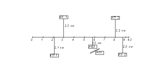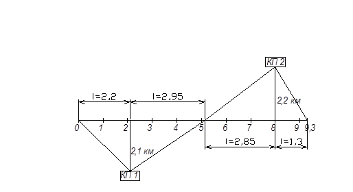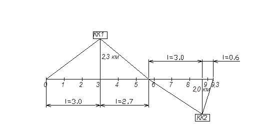 | lСР | км | 6,3 | 5,3 | 4,3 | 3,3 | 2,3 | 1,3 | 1,7 | 2,7 | 3,7 | 4,35 | ||||||||