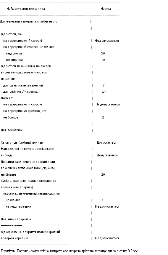 Методи контролю за якістю черепиці, що рекомендуються, приведені в таблиці 3.3