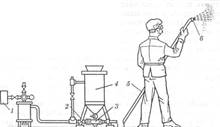 Для видалення часточок основи, що втратили зчеплення з конструкцією, а також для надання шорсткості ідеально гладеньким поверхням на великих площах застосовують піскоструминні апарати, які працюють у такий спосіб.