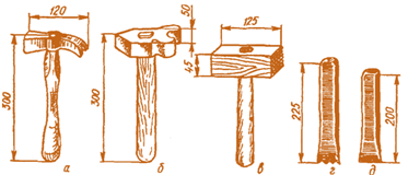 Штукатурний молоток) застосовують для прибивання дранки, дерев'яних рейок до поверхні і насікання кам'яних поверхонь та як ударний інструмент для інших операцій. Молоток з одного боку має бойок, а з другого - проріз для витягування цвяхів. Маса молотка 500-600 г.