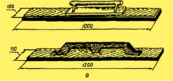 Інструменти для розрівнювання й оброблення нанесеного на поверхню штукатурного шару: а - напівтерки дерев'яні б - напівтерки алюмінієві