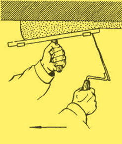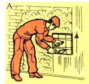 З цією ж метою замість сокола можна застосовувати короткий півтерок завширшки 15—20 см. Спочатку на півтерок смугою накладають розчин. Взявши півтерок обома руками, притискають його до стіни і намазують розчин, як значено вище.