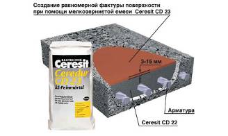 Матеріалом Ceresit CD 23 можна не тільки створювати ідеально гладкі бетонні поверхні. Вінвикористовуєтьсяй у випадках, коли необхідно поліпшити зовнішній вигляд невеликихділянокбетонноїконструкції. На них наносять розчинну суміш Ceresit CD 23,надаючиготовоїповерхні за допомогою різних інструментів фактуру, що повторює фактуру вихідного бетону.
