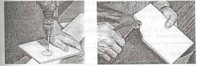 Якщо плитки товсті, після надрізу треба постукати по зворотному боці плитки плитковим молотком, а потім розламати її об кромку повзуна (рис.2.2, а). Якщо від плитки потрібно відрізати вузьку смужку, то спочатку роблять надріз різаком або плиткорізом, а потім відколюють смужку гострозубцями (рис.2.2, б).