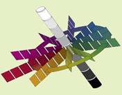 Третичные цвета: образуются путем смешивания первичного и вторичного цветов. К ним относятся – оранжевый, пунцовый, светло – зеленый, ярко – голубой, изумрудно – зеленый, темно – фиолетовый.
