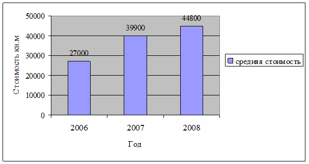 Не последнюю роль в том, что покупателей на загородную недвижимость находится, не так много играют достаточно высокие цены. Сегодня на рынке Екатеринбурга активные продажи ведутся в 32 организованных поселках индивидуального жилья. Средняя цена предложения домовладения в них составляет около 44800 руб./ м2 . Это более низкий показатель, чем средняя стоимость квадратного метра в городской квартире (сейчас она составляет около 57863 рублей).[20]. Динамика изменения цены за 1 м2 в коттеджных поселках представлена на рисунке 1.4 (Приложение 4).
