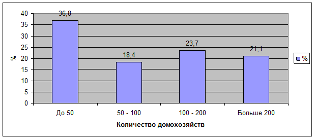 На сегодняшний день, на екатеринбургском рынке загородной недвижимости более трети (36,8%) предложения, это небольшие коттеджные поселки, количество домохозяйств в которых меньше 50. Средние по размеру коттеджные поселки составляют более 40% всех выставленных на продажу проектов. Доля крупных поселков, состоящих из 200 и более домохозяйств, составляет пятую часть (21%) от объема.