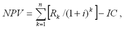 где Rk – годовые денежные поступления в течение n лет, k = 1, 2, …, n;