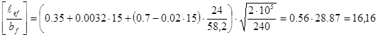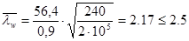 = 100. Тогда по таблице 72 СНиПа «Стальные конструкции»