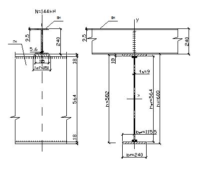 6)Проверка местной устойчивости стенки7. Расчет опорной части балки8. Подбор сечения сплошной центрально сжатой колонны
