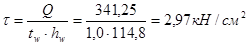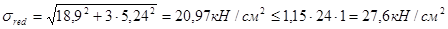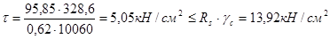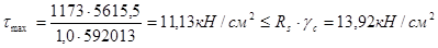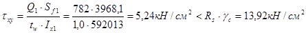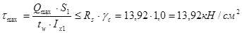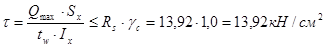 Проверка прочности от действия касательных напряжений в опорном сечении балки:
