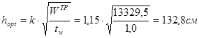 Оптимальная высота главной балки из условия наименьшего расхода материала:
