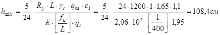 Наименьшая допустимая высота балки определяется из условия жесткости: