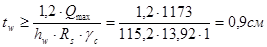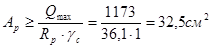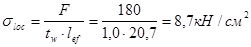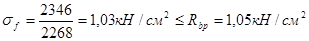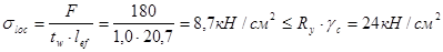 Толщина ребра оголовка определяется из условия сопротивления смятию под полным опорным давлением: